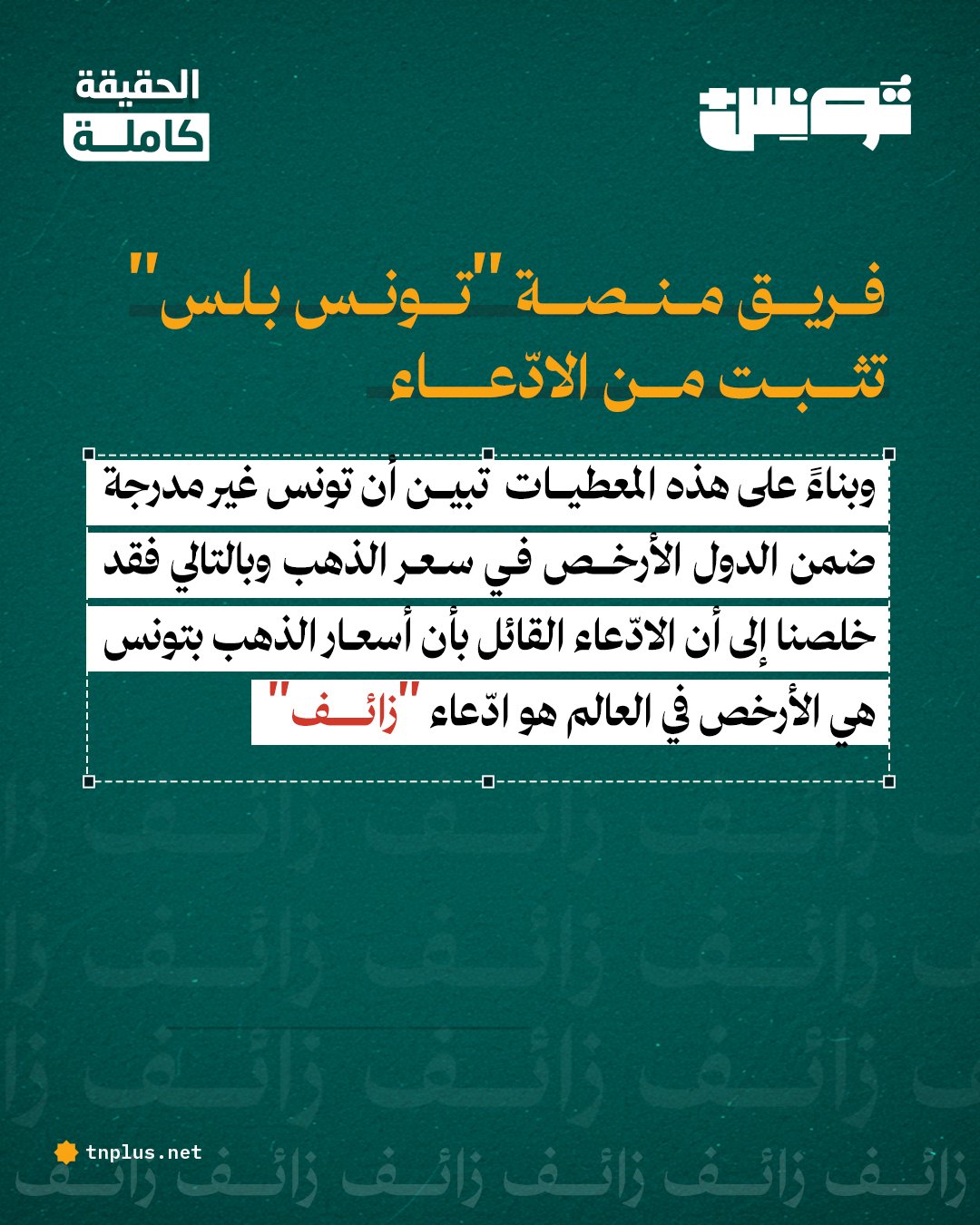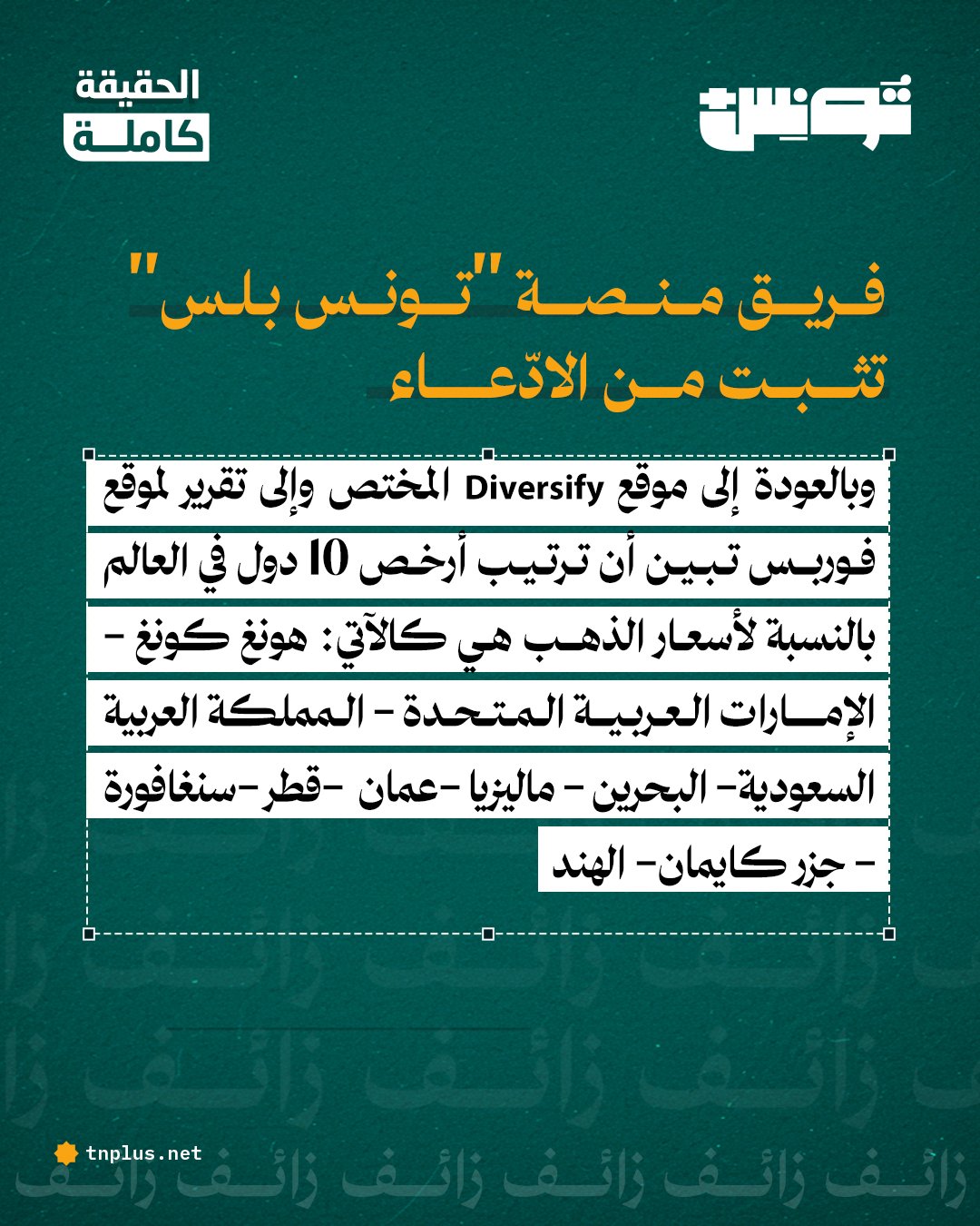 وبناءً على هذه المعطيات تبين أن تونس غير مدرجة ضمن الدول الأرخص في سعر الذهب وبالتالي فقد خلصنا إلى أن الادّعاء القائل بأن أسعار الذهب بتونس هي الأرخص في العالم